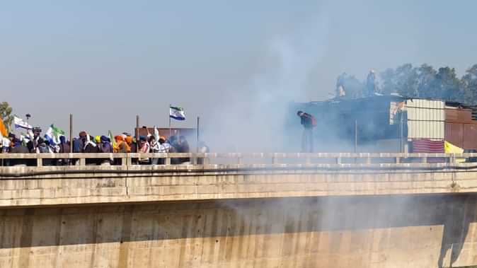 पुलिस की तरफ से किसानों पर आंसू गैस के गोले छोड़े गए हैं। बैरिकेड पर लगी जाली हटाने पर पुलिस ने कार्रवाई की। किसानों पर स्प्रे किया एक किसान बैरिकेडिंग पर बने शेड पर चढ़ गया है। पुलिस ने उसे चेतावनी देकर नीचे उतारा गया। इससे पहले कुछ किसान लोहे के जंगले पर चढ़े तो उन पर स्प्रे किया गया जिससे आंखों में जलन हो रही है। किसानों के अनुसार, स्प्रे मिर्ची वाला था।